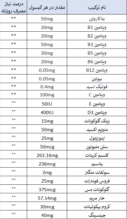 میزان مصرف پیشنهادی 1 قرص به صورت روزانه یا طبق دستور پزشک